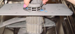 - Вода не нагревается, посуда отмывается плохо, не высыхает. На дисплее может возникнуть код ошибки Е09. Главная причина неисправности – сгоревший ТЭН. Нагреватель выходит из строя из-за использования некачественного моющего средства, жесткой воды, из-за которой образуется накипь. Элемент нужно менять. Еще одна причина – поломка термостата, который заменяет температуру жидкости, а затем передает команду модулю управления. После этого сигнал направляется к ТЭНу, который начинает прогревать воду. Если термостат сломан, нагрева не происходит. Датчик меняют на новый.
